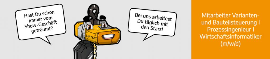 Mit knapp 350 Mitarbeitern weltweit gehört die LIFTKET Gruppe zu den weltweit führenden Herstellern von Elektrokettenzügen. Für unser stark expandierendes Unternehmen suchen wir nur die Besten am Markt. Ein Team hoch motivierter Ingenieure, Meister und Facharbeiter entwickelt, fertigt und vertreibt unsere Hebezeuge. Dabei sind kundenspezifische Sonderausführungen ein praktizierter Teil unserer Firmenphilosophie. Unsere Kunden sind auf der ganzen Welt tätig und verlassen sich seit Jahrzehnten auf unsere hohe Qualität und Zuverlässigkeit.